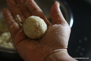 - If you feel the mixture is too dry to make ladoo, add few drops of melted ghee and make ladoos.