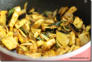 - Saute them in a medium flame till the brinjals become tender and cooked nicely.