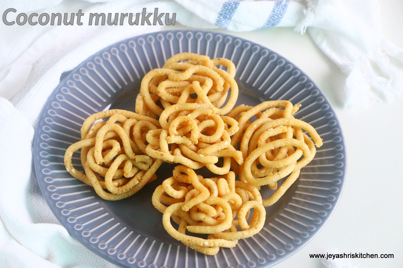 Coconut murukku recipe, Easy to make coconut flavoured murukku recipe, Easy Diwali snacks recipe. Coconut murukku recipe with full video and step by step pictures.