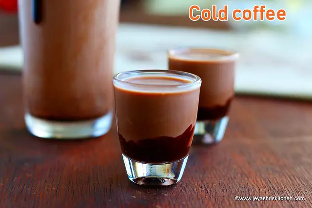 Cold coffee recipe, I am a big fan of filter coffee but generally i prefer my coffee super hot. For the past few weeks, my daughter Varsha started making coffee on her own and she was pestering me that she will make a post on jeyashri’s kitchen as she has holidays now. We took a video for making cold coffee but it got corrupted and we couldn’t edit that. Luckily i captured the step wise pictures on how to make cold coffee. Now over to Varsha…