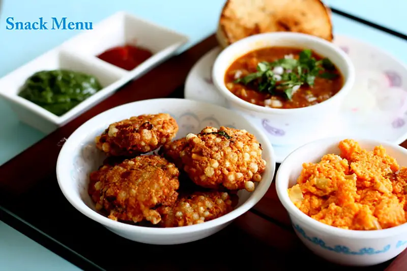 As i planned this menu, i boiled potatoes for sabudana vada and pav bhaji when i was coking in the morning. Vegetables for pav bhaji was cut in the morning itself. Carrot halwa i made in the morning and kept in the refrigerator. I soaked sago after my lunch. I made the dough for vada and kept in a box around 3 pm. When the guests came around 5 pm, it is easy for me to make the sabudana vada hot and serve for them. Bhaji for Pav bhaji is also ready by 4 pm. Only the Pav buns were toasted just before serving. Coffee or tea or juice , depending on the choice of the guest you can make and serve.