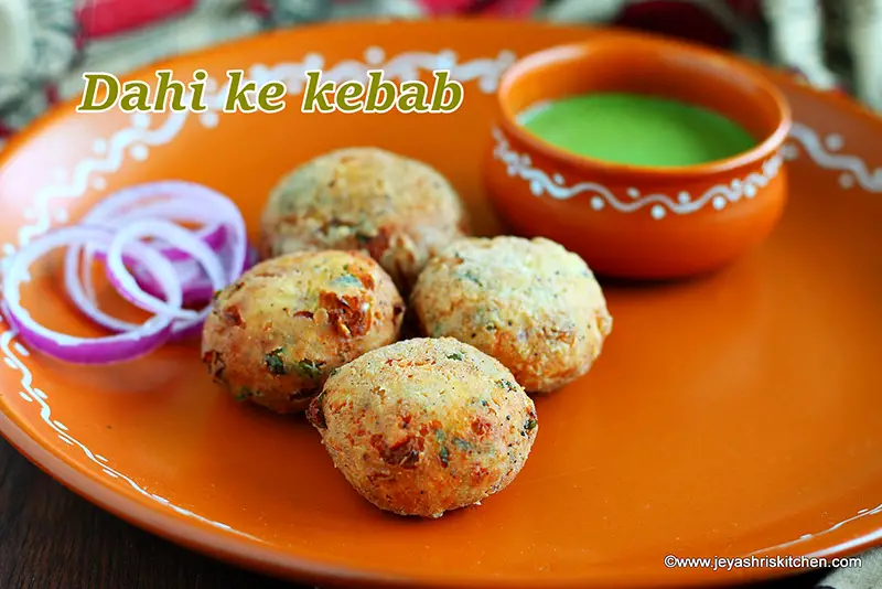 Dahi ke kabab| Dahi ke kebab is an easy party starter snack recipe. I have first tried this for my cookery demo with Alvas yogurt Singapore, last year. This dahi kabab was a super hit in that cookery demo. Yesterday i had a big batch of home made yogurt,so wanted to try this try out this kabab recipe again to post in Jeyashri’s kitchen. I took the video of dahi kabab recipe and shared my lunch platter also in Jeyashri’s kitchen Instagram. The first time i have seen this recipe in Venkatesh bhat’s show. I remember him using chutney dal powder(pottukadalai)as a binding agent for making this kabab. I have once tried with that but some how i felt gram flour | kadalai maavu suits my taste. You can use millet flour or sathu maavu too.