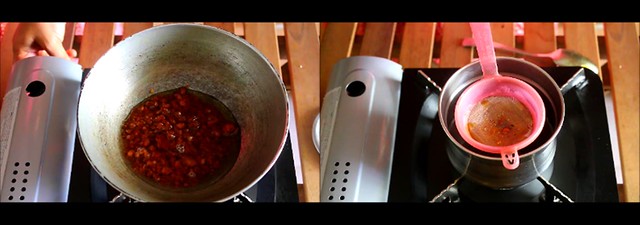 - In a pan add jaggery and add little water. Melt the jaggery and filter the impurities.