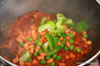 - Grind the tomato and add the puree to this. You can use store bought puree too.
