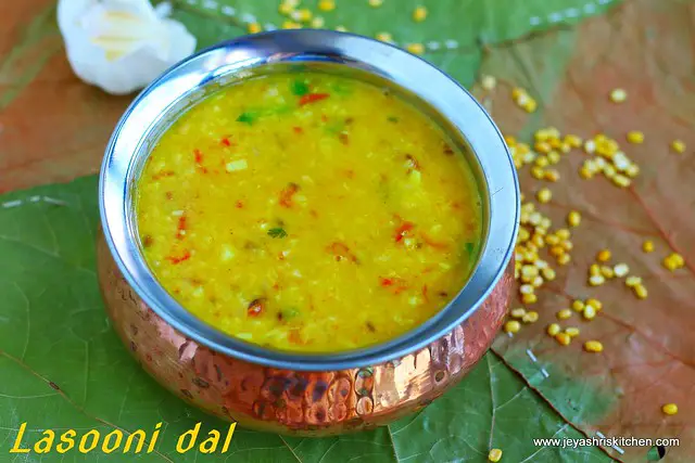 Lasooni dal tadka | lasuni dal is a simple dal recipe made with the addition of lot of garlic. I have given this recipe for Aval vikatan supplement 3 years back. While i was going through those books, i thought i will post this easy dal recipe. This can be had as an accompaniment with plain rice or with chapathi or paratha. Adding lot of garlic gives a nice flavour to the dal and also enhances the taste.