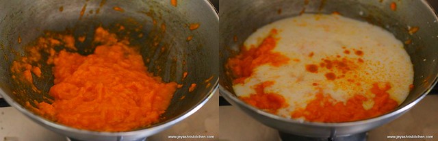 • Discard the seed and put the pulp in the pan. Add the buttermilk to this.