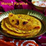 Being a hardcore fan of mangoes, I was simple gazing at the list and one of my friends ordered a mango drink from that list. Though it is a juice, they added little crushed cumin seeds in that. I tasted that and was quite impressed by its taste. On our way back picked up of big bag full of mangoes and today morning, with my creativity, did this simple mango paratha. It turned out pretty good and I had this for my lunch with boondi raitha. Try this out at home and enjoy the summer with mangoes. Stay tuned for more mango recipes coming up in Jeyashri’s kitchen.