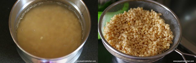 - Soak the urad dal in water for 30 minutes. Drain the water completely and put the urad dal in a colander to drain the water completely.