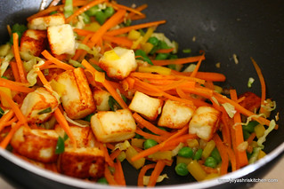 - Add the paneer cubes.