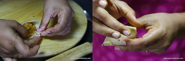 4. While sealing ensure it is sealed properly. Else it may break into the oil while frying and make a mess.