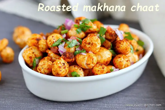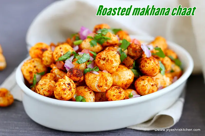 Roasted phool makhana chaat recipe, a healthy and easy to make chaat recipe, perfect for a tea time snack.