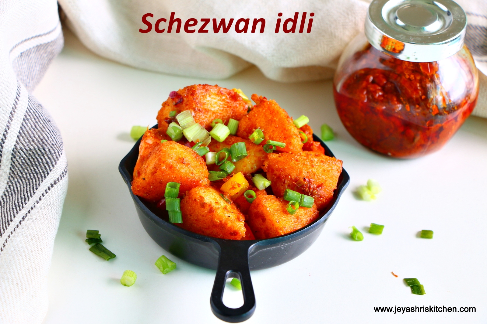 Idli is a popular South Indian breakfast recipe. Apart from consuming fresh idlis with chutney and sambar, we make few interesting recipes with leftover idlis too. Very recently I updated the schezwan sauce recently with full video. We usually make Schezwan noodles or schezwan fried rice using it. Also, there are many more recipes available in the net using schezwan sauce.