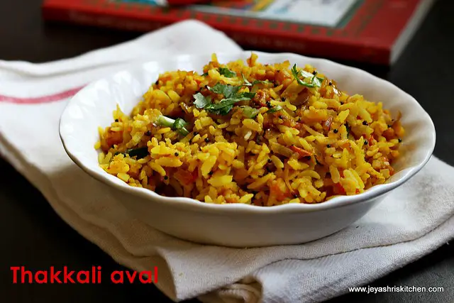 Tomato poha|thakkali  poha is a very easy breakfast or tiffin recipe, which can be made in 10 minutes. Even bachelors who has no idea on the spices or powders in the kitchen ,can make this upma.  without much write up let us go to the tomato poha upma recipe. Check out my batata poha recipe.Â